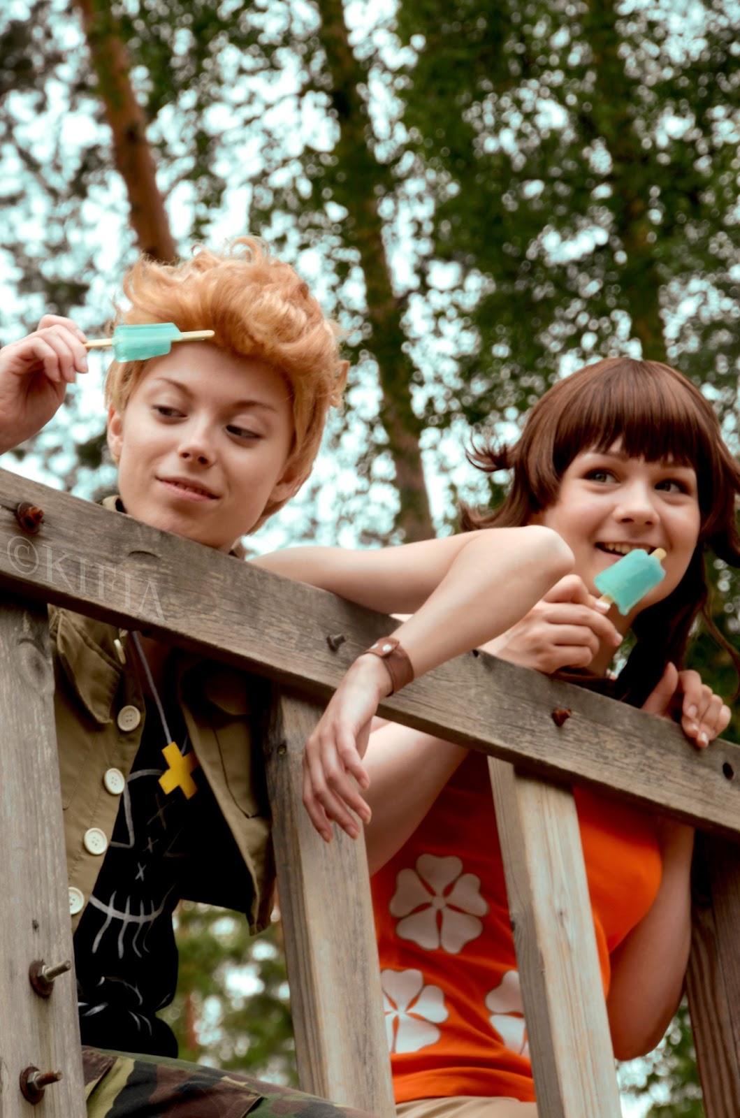 jäätelöiden kanssa heti Ninnun talon pihalla, sillä mokomat