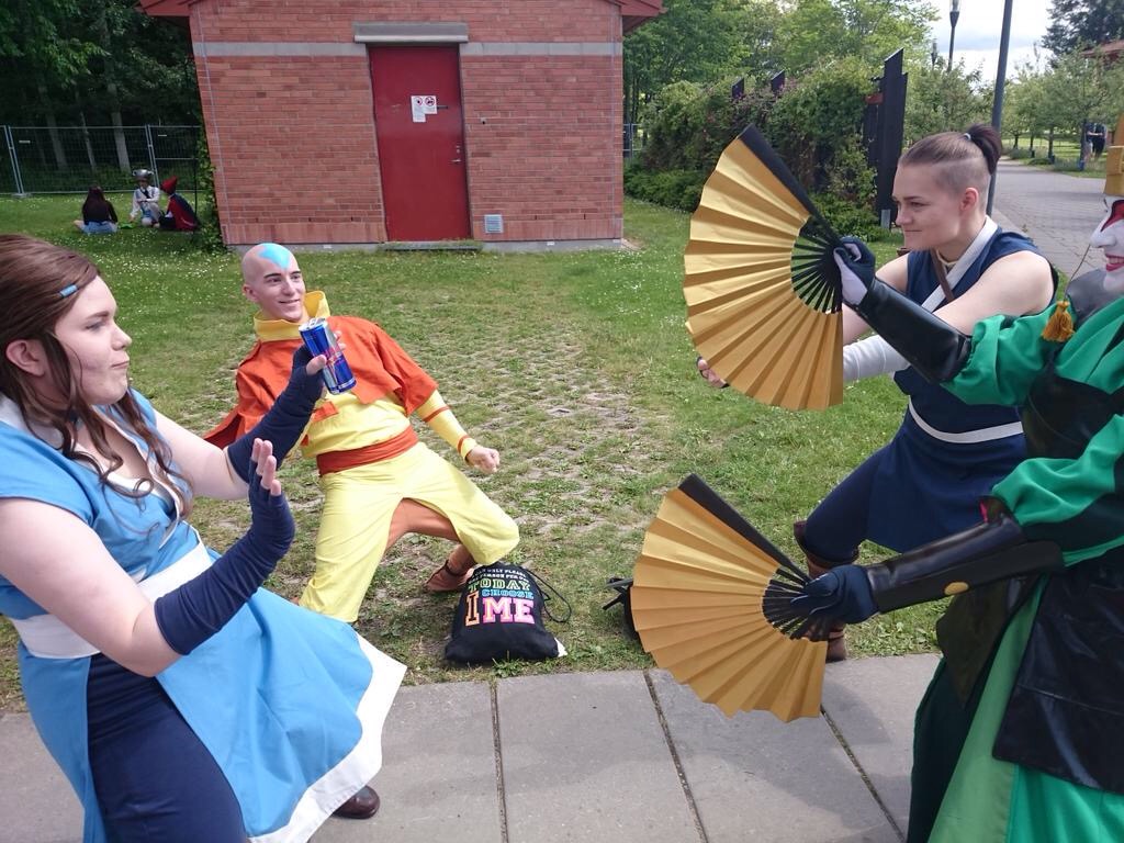 Later on we found the rest of our gang and we hanged around and butt derped with each other. I can not say this enough how much I love our little Avatar family. Everyone is super nice and even though this group business has been going on for so many times this year, I still find it to be the best thing ever. I cut my hair shorter for Sokka in for Yukicon in January, and after growing it back for months and months, I wouldn't have wanted to cut it. Hair has always been just hair to me, it grows back, but now it felt especially bad since it was the first time was actually trying to grow it out after middle school. I'm supposed to cut it shorter once again next winter when Biitti, Riko and AG are going to have a photoshoot for the water tribe (in Lapland, if all goes as planned), so I'll have to prepare myself mentally for the ordeal. That shall be that last time I cosplay Sokka.